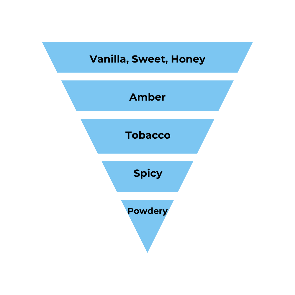 An amber fougere fragrance, filled with accords of vanilla, sweet honey, amber, aromatic lavender, tobacco, and fresh spicy notes.