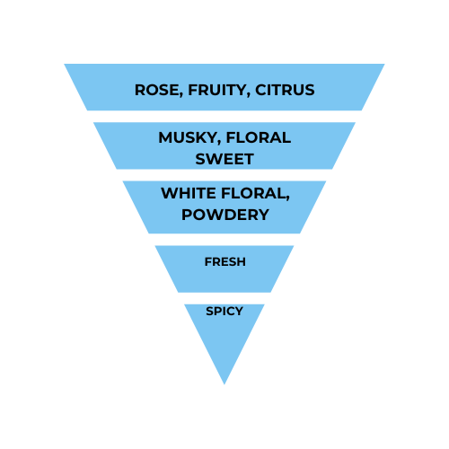 Floral fruity scent, featuring alluring accords of citrus, sweet fresh spice, powdery white floral, musky green, and iris.